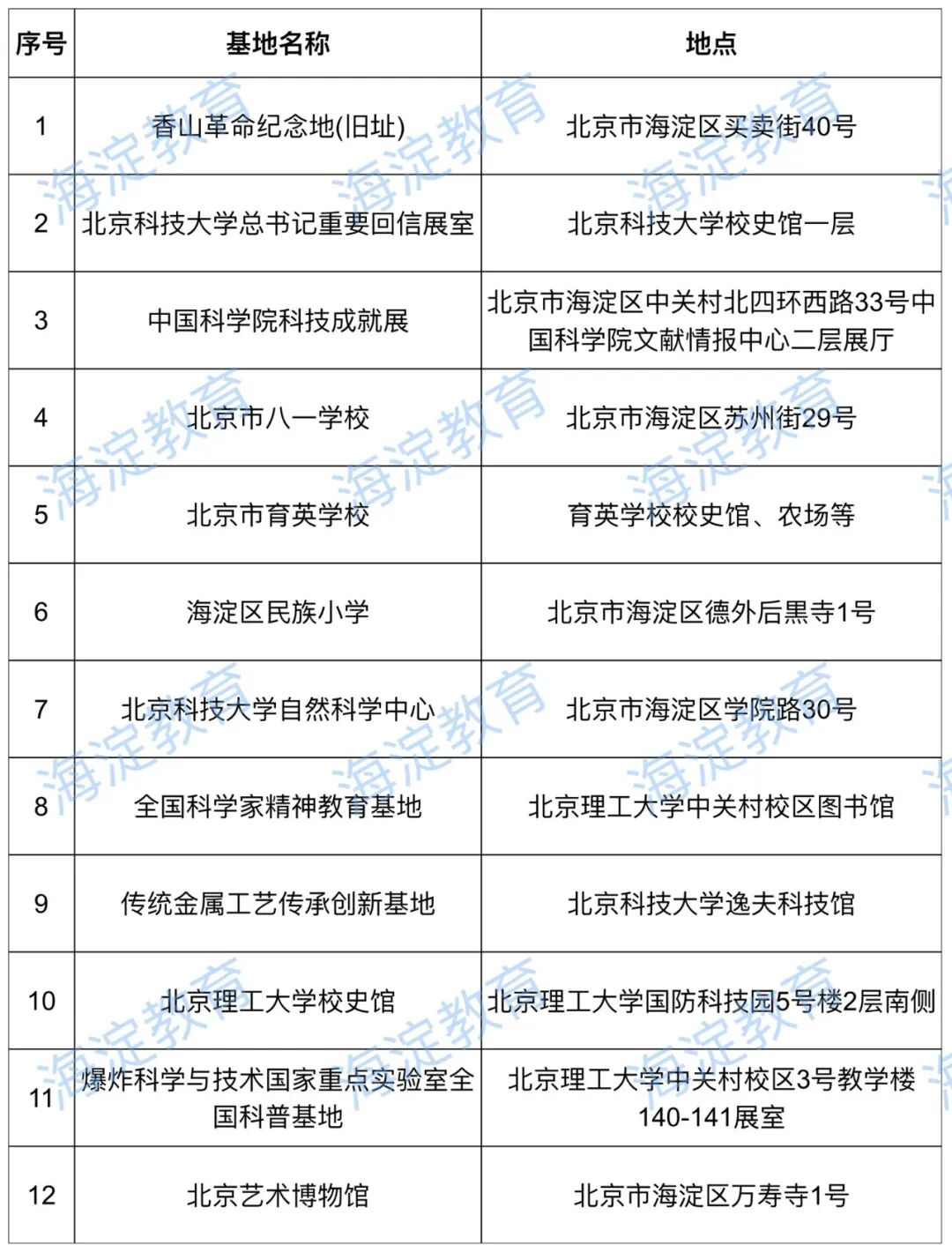海淀区-北京理工大学-北京科技大学共同体实践教学基地名单