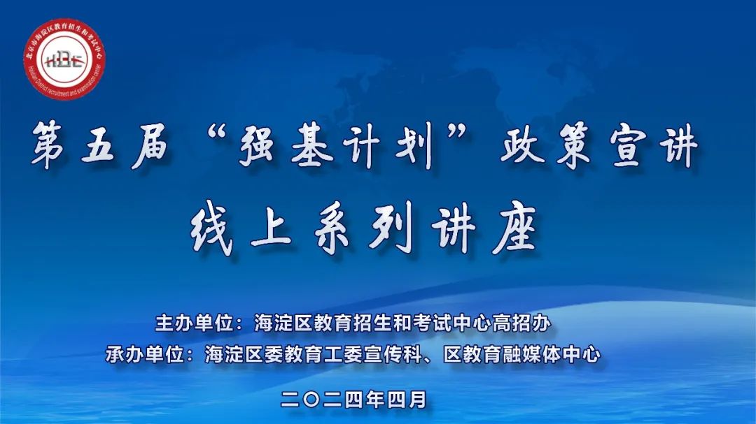 为方便海淀区广大考生家长详细了解各校“强基计划”招生情况,海淀区高招办将会同区委教工委宣传科、区教育融媒体中心,携手全国20多所985院校举办“第五届强基计划政策宣讲线上系列讲座”,届时,各高校招办负责人将在直播现场重点介绍“强基计划”,和其他专业招生政策以及各专业特点等家长和考生关注的信息。