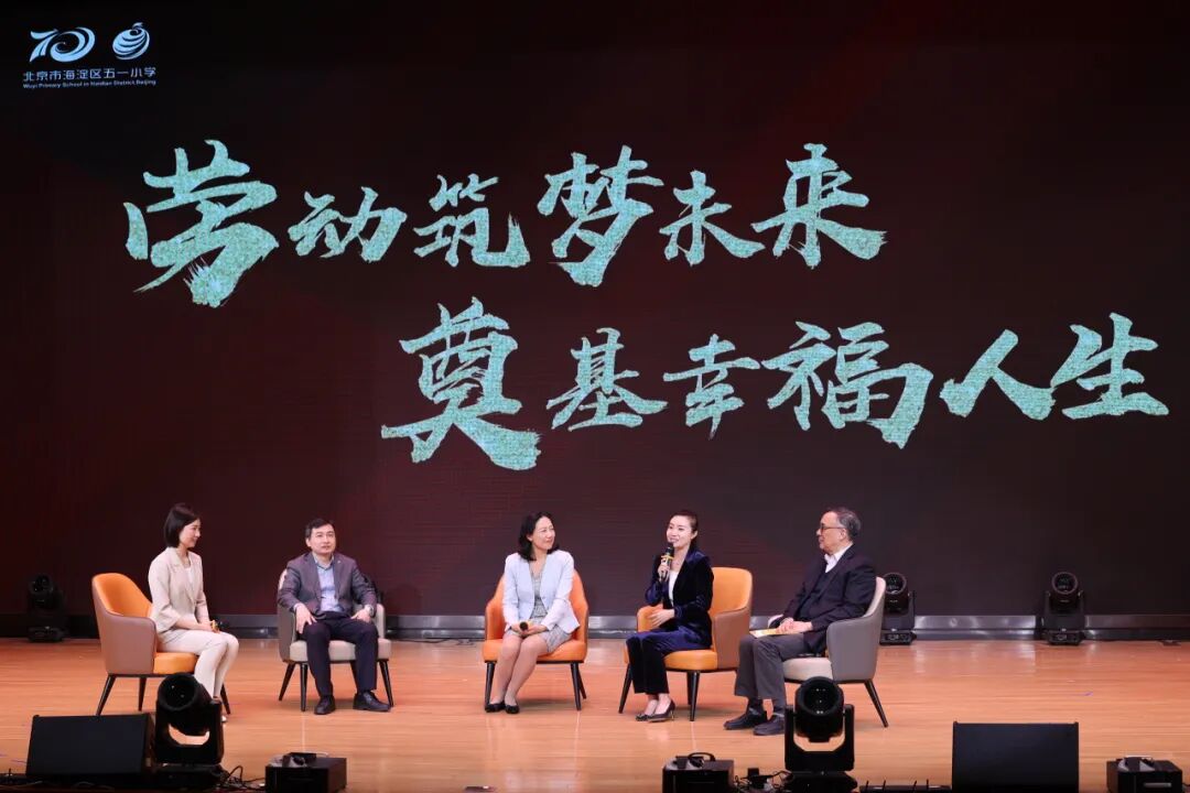 学校劳动教育的进步,离不开校家社的协作共育。现场会上,中国教育学会学术委员会主任、清华大学教授谢维和,北京市十一学校党委书记、校长田俊以及家长与学生代表,围绕劳动的育人价值、小初衔接课程劳动育人效果、品质塑造以及启蒙教育等议题展开访谈。访谈嘉宾高度赞赏了学校“金苹果”劳动教育品牌文化在制度构建、课程设计及评价体系等领域所展开的富有成效的探索,充分肯定了劳动教育在释放孩子天性、挖掘创造本能、张扬多元个性以及强化自我认知等方面的深层价值和深远影响。