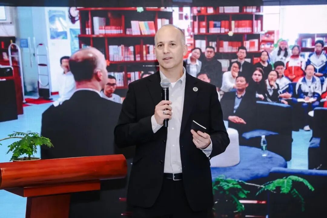 清华附中学生张敏行和杨灵畅、人大附中学生刘天馨、一零一中学学生王睿、交大附中学生龚晨先后用英文发言,结合各自对人工智能的理解与想象,深入探讨了人工智能对于2050年未来世界的影响。同时与安迪的儿子Ryan,以及来自线上美国亚特兰大的学生Jayden Xu和Caleb Varnadore、密歇根州的活动创始学生Selene Zhang、美国波士顿的学生Chris Shu进行了广泛交流。