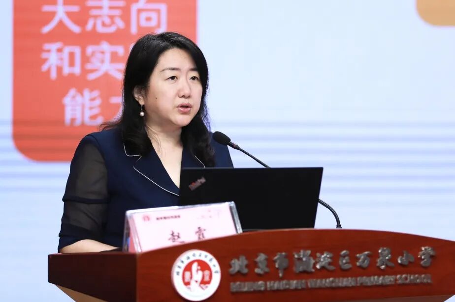 海淀区教委副主任赵霞在致辞中详细介绍了海淀区在校家社协同育人方面的总体情况。她从整体谋划,构建校家社协同共育运行机制;强化指导,提升区域家庭教育指导服务效能;全面育人,打造校家社联动的五育融合模式;建设队伍,凝聚校家社同向共育合力;数字校家,创建校家社协同育人新通道等五个方面,全面介绍了海淀区在校家社协同育人方面所做的工作和取得的成效。