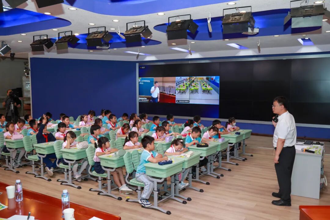 课堂观摩环节,中关村第二小学教师郑翔宇以及王可惠带来以《农业AI——智慧农场和养殖场》为题的双师课堂,利用软件以及人工智能课程平台,根据两个农户带来的问题,通过AI技术来解决,以班级为单位进行两校区的互动。引导学生学会合理利用人工智能来解决生活中的实际问题,开展创新研究,为日后更便捷的学习和生活奠定基础,进而提高学生的数字化学习与创新能力。