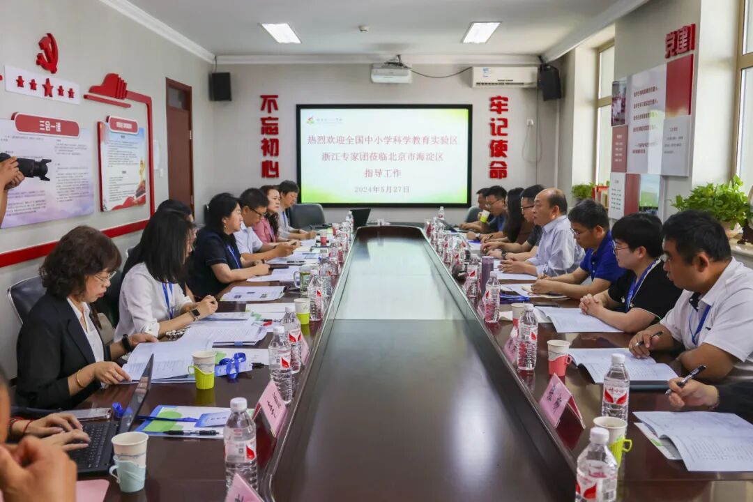 为推动科学教育高质量发展,助力科技强国建设,5月27日,由浙江省教育厅教研室副主任、教育部专家张丰带队,浙江省教育技术中心教育装备部郭洪、温州市教研院副院长施昌魏、北大附中台州飞龙湖学校副校长王燕红组成的调研组,来到海淀区调研全国中小学科学教育实验区相关工作。