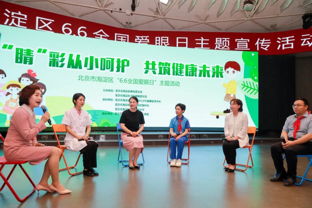 主题沙龙环节,北京首都医科大学同仁医院的眼科专家、海淀区第二实验小学教师、学生、校医及家长代表围绕“校家社齐努力,呵护健康好视力”的主题,讨论如何养成良好习惯,运用科学方法爱护眼睛,共同携手做好近视防控。