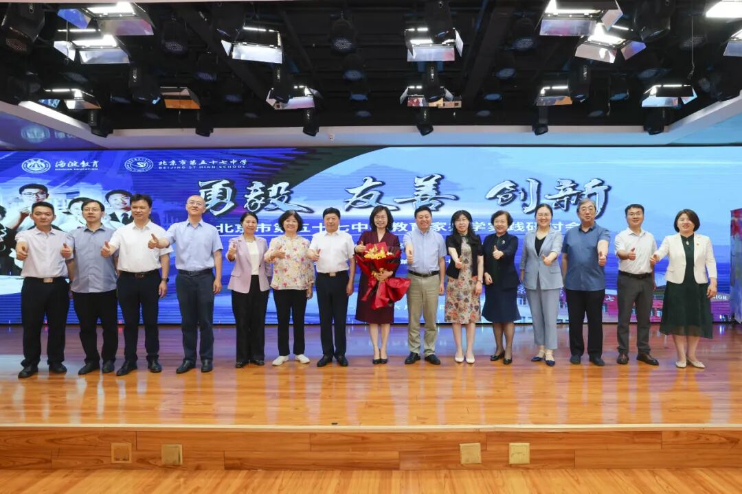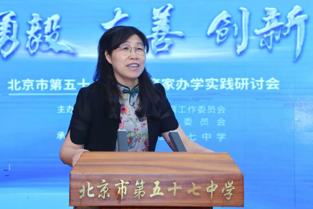为进一步总结、梳理北京市第五十七中学的办学经验,更好地发挥名校和名校长的辐射带动作用,6月19日,由海淀区教育两委主办、北京市第五十七中承办的“勇毅·友善·创新——教育家办学实践研讨会”举行。区委教工委副书记史怀远主持研讨会。