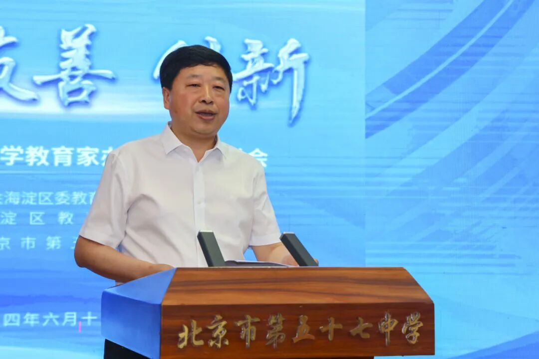 海淀区政府党组成员、副区长武凯在致辞中表示,海淀区不断深化教育供给侧改革,积极推动教与学方式的变革,推进国家义务教育教学改革实验区、全国中小学科学教育实验区等多个国家级改革实验任务落实,已成为国家基础教育改革创新的策源地。他高度评价五十七中的办学实践成果,认为“勇毅”是学校跨越式发展的“精神支柱”,“友善”是学校内涵发展的“科学路径”,“创新”是学校高质量发展的“不竭动力”,并对学校未来发展寄予厚望。