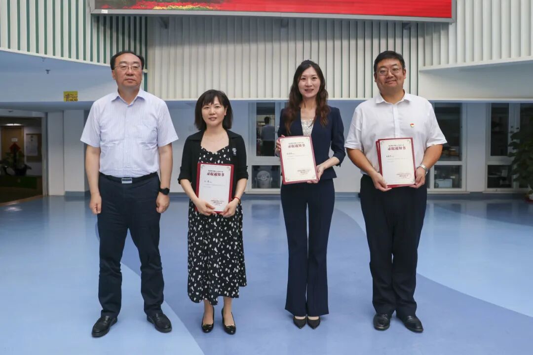 张革为第二期教育创新人才培养工程学员代表颁发录取通知书,肖丹为学员代表赠书。