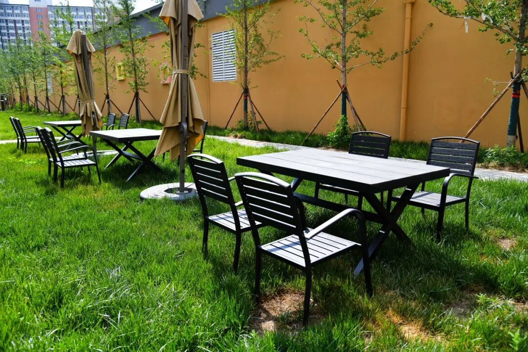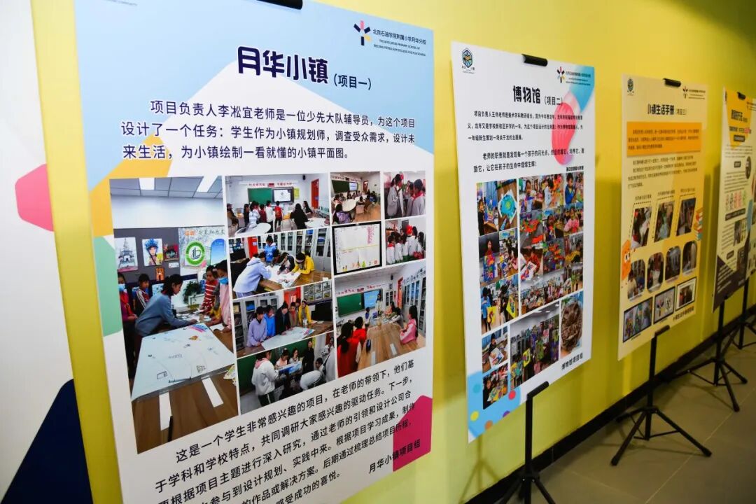操场南侧为教学楼,呈“L”型,走廊各处都是学生设计制作的艺术作品,每一层也都有与之对应的学习空间。