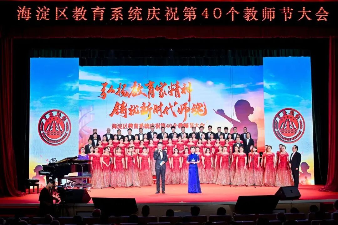 为庆祝第40个教师节,海淀区委教育工委、区教委以“弘扬教育家精神 铸就新时代师魂”为主题,召开区教育系统庆祝第40个教师节大会,对全国、市、区各级先进进行了表彰和慰问。