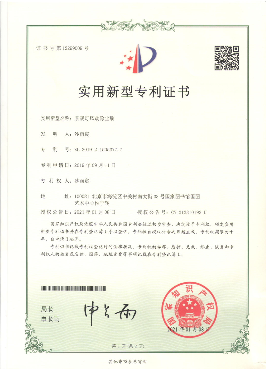 善于观察,勤于动脑,沙雨宸以创新方式解决了很多生活中实际问题。为解决家庭空间利用问题,她设计了“双层遥控折叠床”;看到妈妈单位楼宇间景观灯很难清理,她设计了全自动“景观灯风动除尘刷”;看到马路上出现事故,人们去摆放警示牌非常危险,她设计了“遥控汽车警示牌”,并获得第41届北京青少年科技创新大赛一等奖的好成绩。截至目前,获得两项国家专利,先后在北京市及海淀区发明创新大赛、金鹏论坛、北京市科学建言献策等科技比赛获得一等奖,连续两年在香港国际学生创新发明大赛中分别获得初小组和高小组金奖。