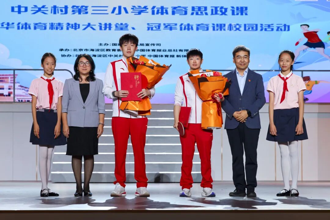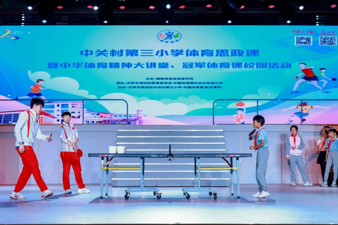 9月23日,中关村第三小学“冠军风采耀校园 体育思政燃梦想”体育思政大课活动举办。奥运冠军王楚钦、孙颖莎作为特殊的“体育老师”,为全体师生带来了一场激情四溢、启迪心灵的体育盛宴。海淀区委教工委书记、区教委主任杜荣贞,海淀区教委副主任赵霞出席活动。