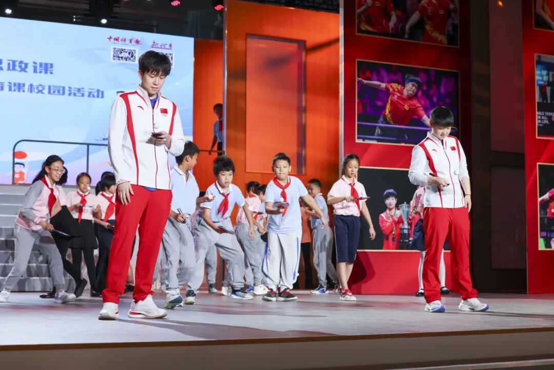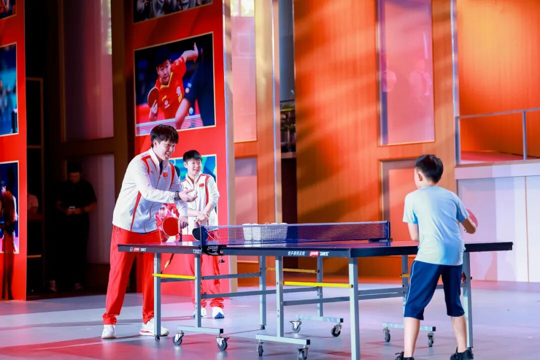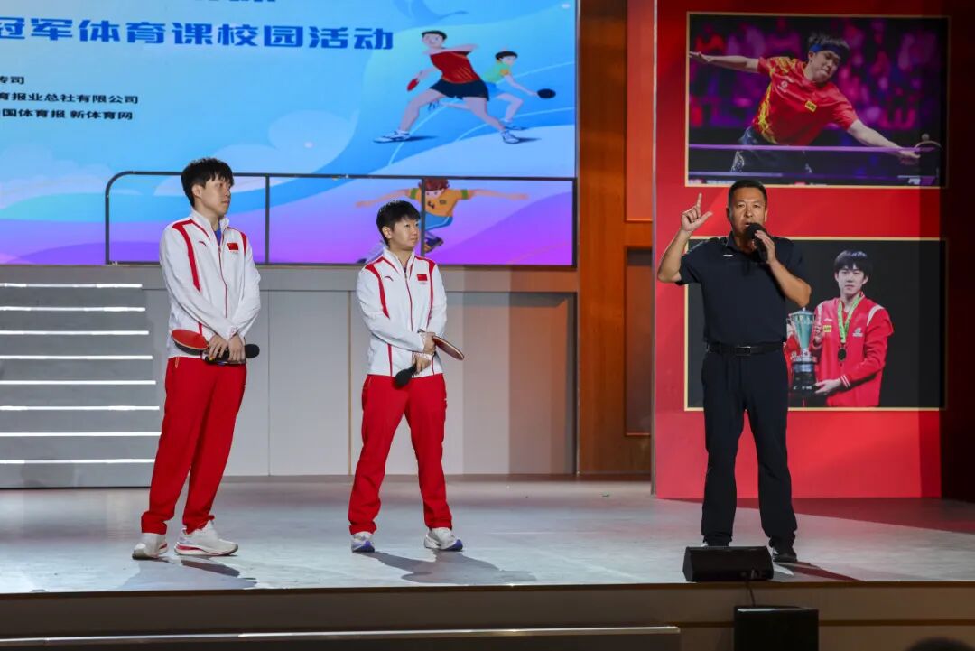 随后,王楚钦、孙颖莎来到同学们中间,从基础挥拍指导到颠球互动挑战,再到高水平对打表演,展现了高超的球技,精彩的“攻防”将现场气氛推至高潮。互动环节,同学们踊跃地向两位冠军提出自己心中的疑惑,冠军们则耐心地一一解答,现场洋溢着温馨热烈的氛围。