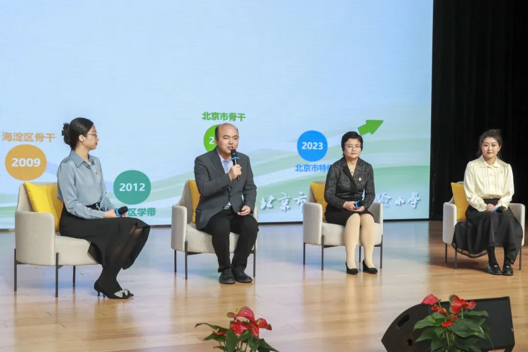 于明与柏春庆、何雪琦、王思艺三位老师共同开展了微论坛《跨界融合,智启课堂》,探讨了语文教育与其他学科的跨界融合,充分诠释了海淀学科教育着眼于培养德智体美劳全面发展的社会主义建设者和接班人,着力在增强学生核心素养上下功夫的教育理念。