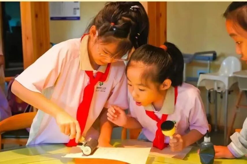 在活字印刷和制作传统漆扇的传统文化体验课程中,同学们亲手触摸了古老的印刷技术,并发挥自己的想象力和创造力,将一块块普通的扇面变成了独具一格的艺术品。