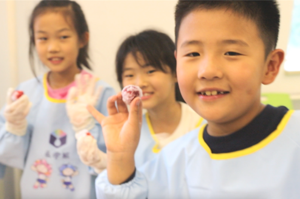 同学们化身为山楂小精灵,开启了一场美食“魔法”之旅。在了解了糖雪球的制作方法和技巧后,同学们将水和冰糖倒入锅中,用锅铲搅拌。在糖浆熬制过程中,大家仔细观察水泡的变化,体验了从制作到品尝的全过程。看着一个个白里透红的糖雪球,大家迫不及待地尝起来,洋溢出满足的笑容。