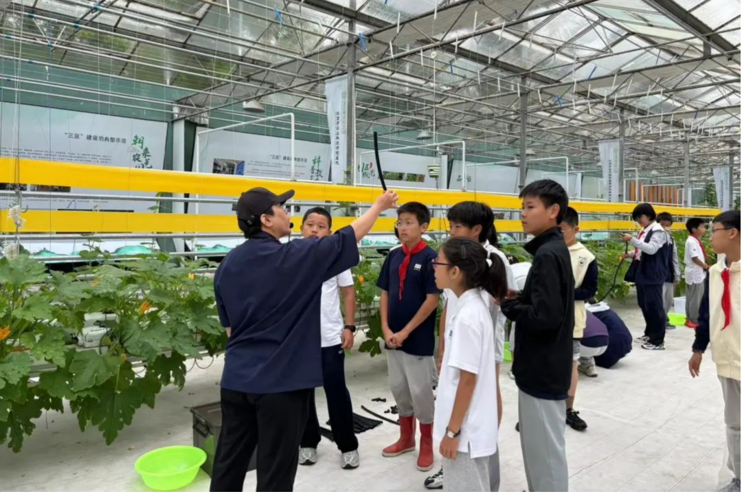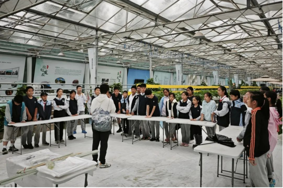 在温室参观过程中,同学们观察智能调控系统与传感器,并学习如何根据植物的需求调整温室的气候环境,使气候条件更适合植物的生长。之后,大家共同搭建了温室模型,进行温室小气候管理。此次活动,同学们深刻体会到科技对农业生产的巨大作用,增强了对智慧农业和乡村振兴重要性的认识。
