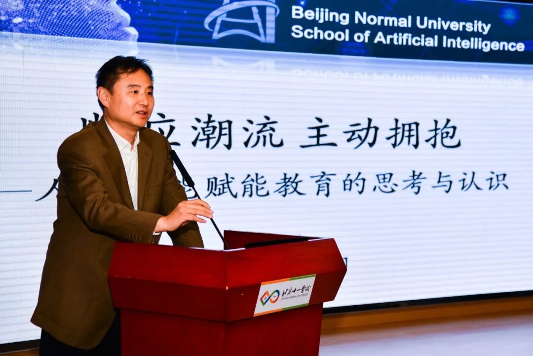 在专题报告环节,北京师范大学人工智能学院院长黄华教授发表了演讲,他围绕“顺应潮流 主动拥抱——人工智能赋能教育的思考与认识”,深入剖析了人工智能在教育领域的应用现状与未来趋势。