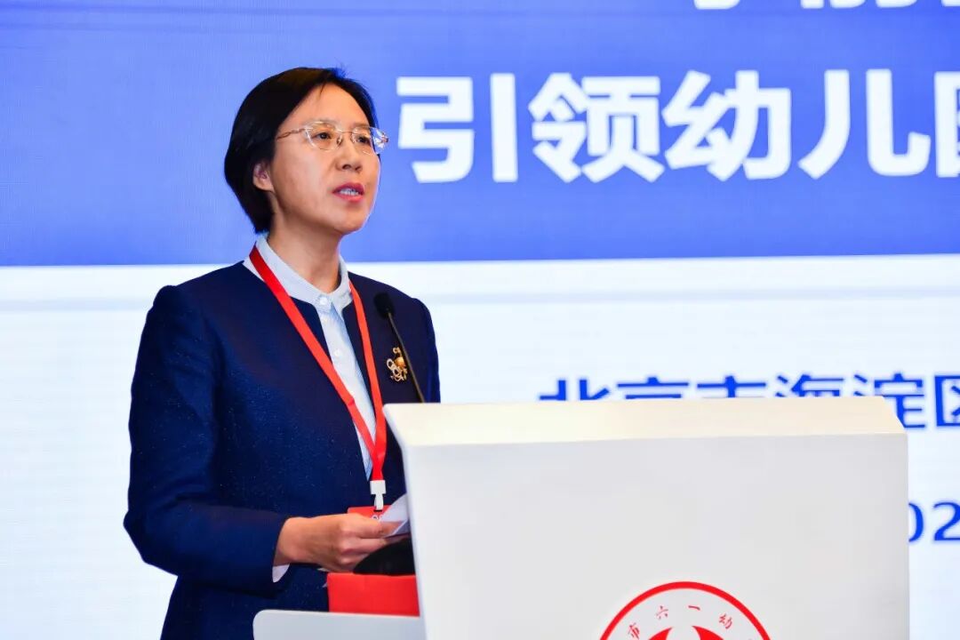 北京师范大学学前教育研究所所长洪秀敏教授对代表发言进行了精彩点评。她充分肯定了海淀区在巩固普及普惠建设成果、全面提高科学保教质量方面所做的努力与探索。她表示,学前教育对个人终身学习与发展有重要奠基作用,幼儿园要坚持以游戏为基本活动,遵循儿童发展规律,坚定做好幼儿学习与发展的支持者。