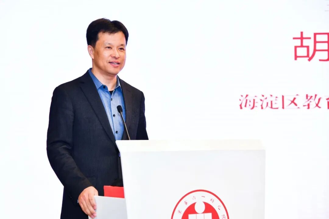 海淀区教委副主任胡剑光主持学前教育区园行交流展示环节。