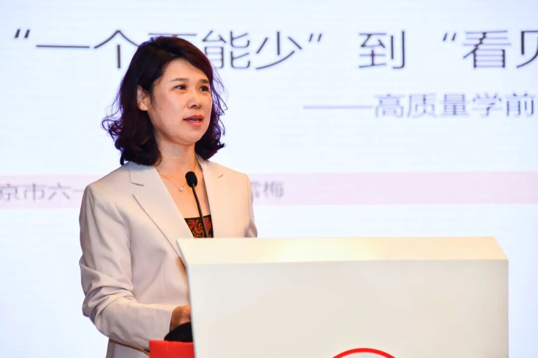 曹雪梅结合六一幼儿院的红色发展历程,从高质量学前教育的初心、实施路径和践行改革等三个方面,分享六一幼儿院在幼儿园教育改革方面的实践与探索。