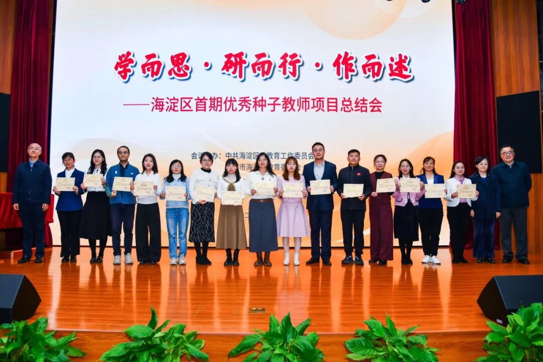 为展示工作站成立三年以来的实践成效,推广工作站在培养优秀教师方面积累的有效经验和举措,打造海淀区教师发展项目影响力,推动海淀优秀教师后备梯队建设,10月30日,海淀区教育两委举办了以“学而思·研而行·作而述——优秀种子教师成长之路”为主题的首期优秀种子教师项目总结会。
