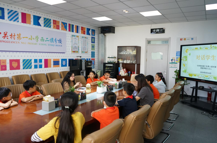 为此,学校为同学们开设了“听他说”每月月会,大家可以在每个月的最后一周来到会议室畅所欲言,对发现的学校管理的问题、同伴之间交往的问题、活动的新想法等,提出自己宝贵的意见和建议。学校学生成长服务中心、课程与教学中心、资源统筹中心每次都会派代表参加孩子们的月会,认真用心地听取孩子们的建议,对存在的问题进行改进和提升。这也成为了学校培养儿童智慧的重要载体。