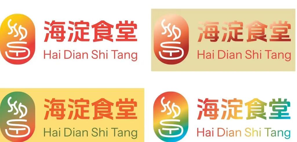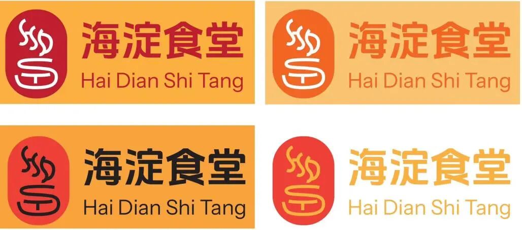 这个logo直观呈现了一种家的温暖,希望人们在海淀食堂内就餐,像在家里一样温暖、亲切、健康。我首先把海淀食堂的拼音首字母进行了变形,抽象为了一个冒着热气饭菜的图像线条,随后整体选用了朱红色。朱红色属于传统色系,是一种醒目且非常显眼的颜色,它结合了红色和橙色的特点,在传统文化中寓意着繁荣昌盛,也代表人们对美好生活的向往与追求。