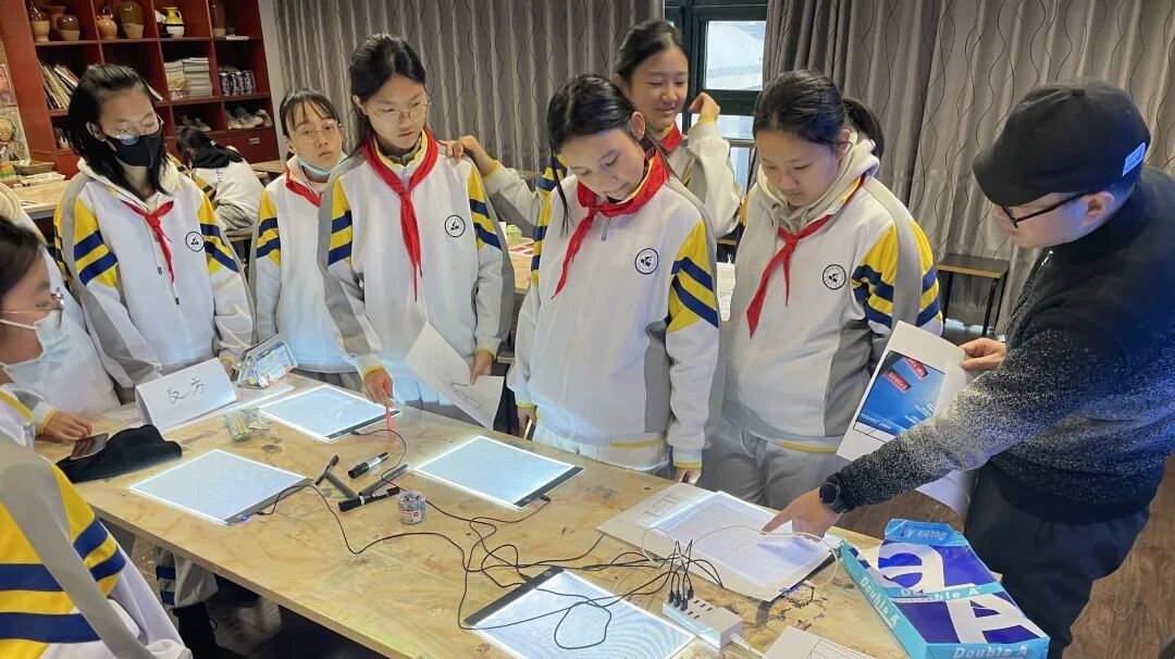 老师们口中聪慧的潘星宇在初一进校后,就以优异的成绩和美术素养加入到了学校金帆书画院,并在多项美术和设计比赛中获奖。作为北京市的高水平艺术社团,八一学校金帆书画院一直致力于为学生搭建多元化的艺术教育平台,鼓励学生在真实的项目中磨砺自我、服务社会。在这次设计中,书画院老师不仅指导学生们完成作品,还带领他们从实际应用的角度思考设计,提升他们的专业能力。