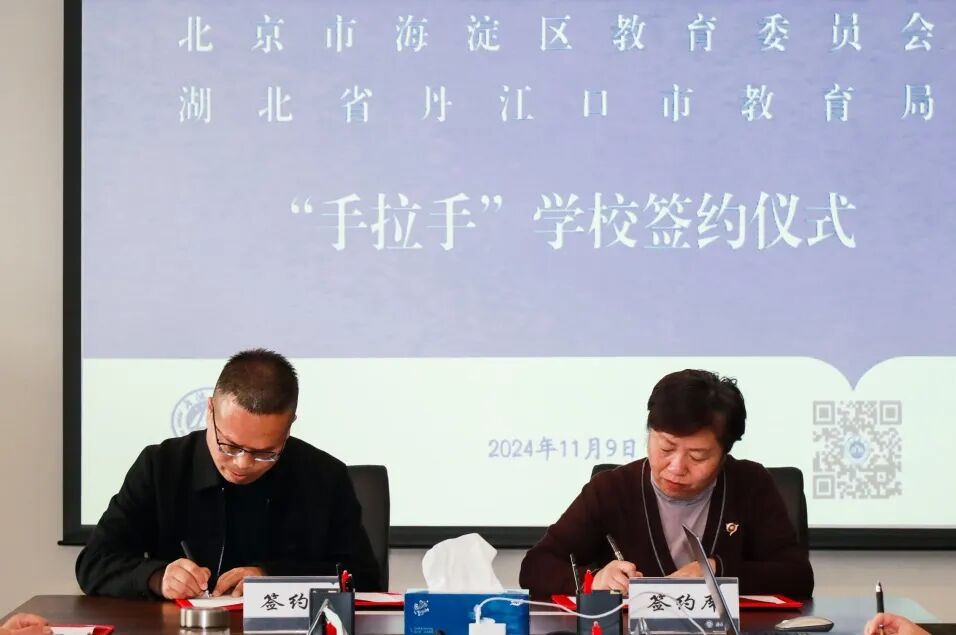 11月9日,海淀区教委分别与内蒙古敖汉旗教育局、湖北省丹江口市教育局在海淀区教师进修学校举行了签约仪式,进一步推进教育共赢发展。