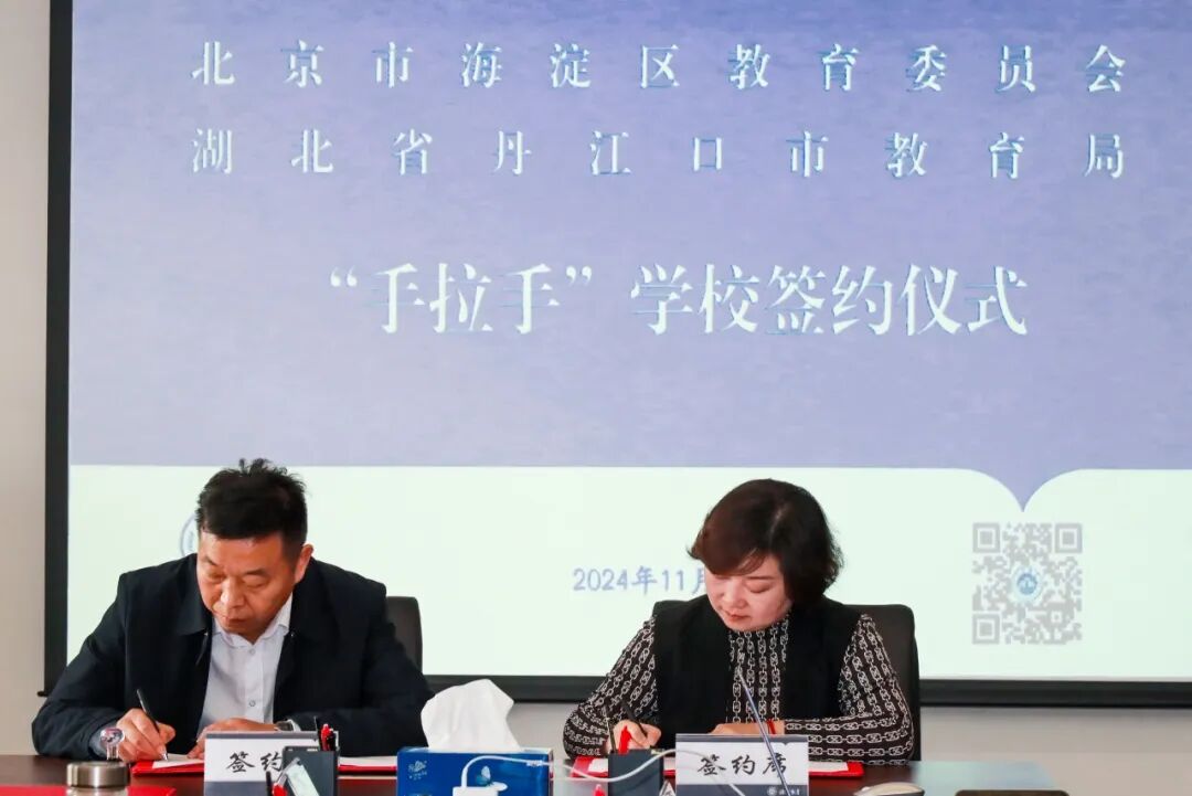随后,双方举行了“手拉手”学校签约仪式,进一步深化教育协作关系。新增的“手拉手”结对学校包括海淀区万泉小学与丹江口市明珠路小学、首师大附小与丹江口市六里坪镇小学、中关村中学知春分校与丹江口市三官殿九年一贯制学校。签约仪式明确了未来合作的重点,将涵盖教师培训、教学资源共享、教育科研交流等多个领域,为两地教育发展注入新的活力。