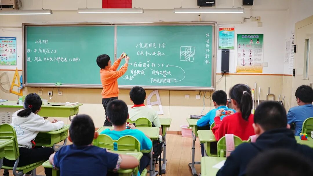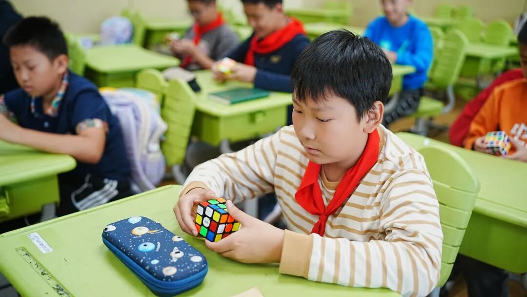 放学后,学生杨名宜迫不及待地将魔方课上老师教的十字花式与妈妈分享。她认真地把新学到的技巧传授给妈妈,并和妈妈展开了一场魔方比赛。在这个过程中,魔方课不仅锻炼了学生们的思维能力,又为亲子间搭建起一座充满乐趣的桥梁,促进了亲子关系的升温。