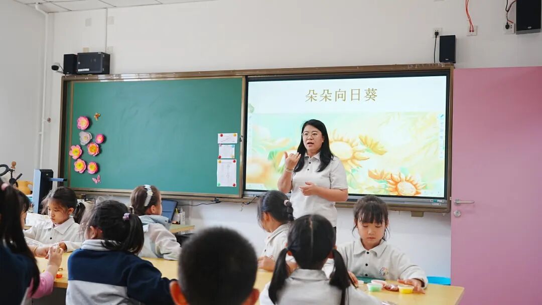 在中秋节前夕的课堂上,褚淑艳带着学生们捏制小兔子。在制作的过程中,孩子们不禁联想到龟兔赛跑的故事。褚淑艳巧妙地引导同学们讨论 “兔子最终失败的原因,乌龟具有哪些优秀的品质”。在下一堂课中,褚淑艳又悉心教学生们捏制小乌龟,制作出完整的龟兔赛跑故事。