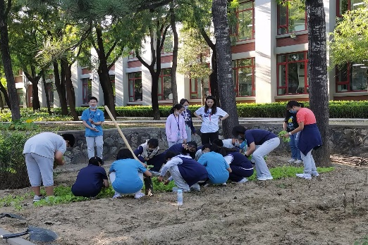 组织实施气象观测课程,为学生讲解气象站的设备和观测原理,学习气象站的使用和数据记录,组建学生气象讲解员队伍。与中国药用植物所合作,打造学校中草药课程,组织金银花的采摘活动。