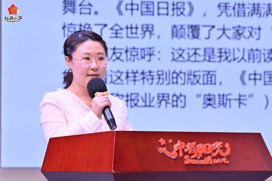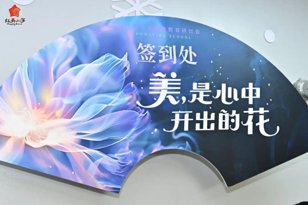 心中有阳光,才能开出最美的花。红英小学美育教育研讨会现场以“美,是心中开出的花”为主题,让美绽放在学校的时时、处处、人人,这和学校的阳光育人理念高度契合。“美育在红英小学不是孤立的点缀,而是贯穿人人教育观,深植为孩子一生打好底色的理念的关键脉络。由此,学校将‘浸润’落实为时时、处处、人人的‘美的教育’,将美育融入学校日常生活。”红英教育集团党委书记卜国超在致辞中表示。
