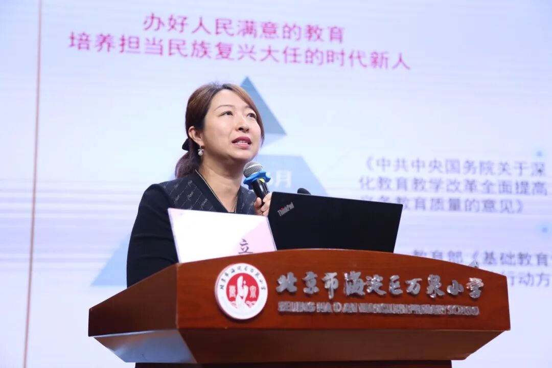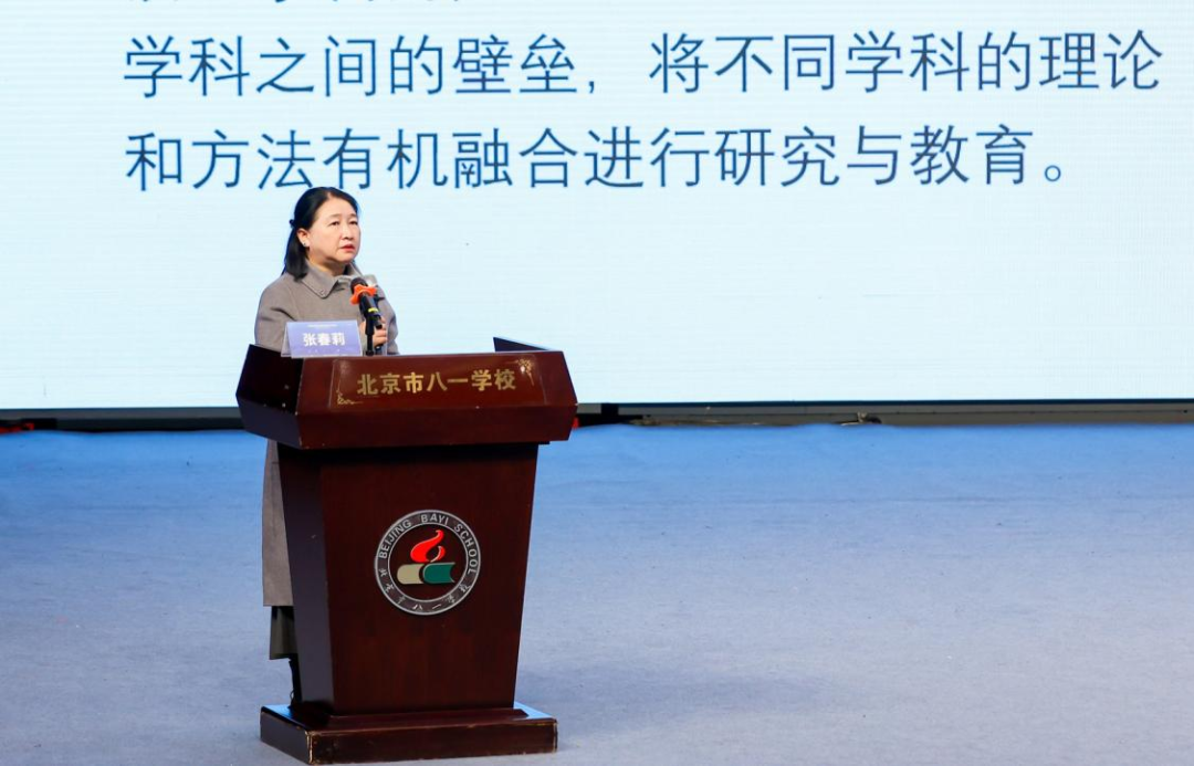 北京师范大学教育学部课程研究院院长张春莉作题为《核心素养视域下的融合式教学》的主旨演讲。她从核心素养的角度出发,探讨了融合式教学的理念与实践,为提升教学质量提供了新的思路。