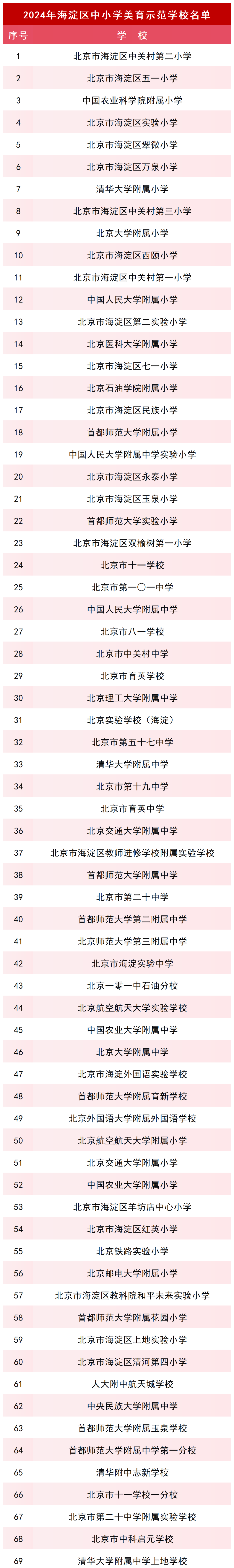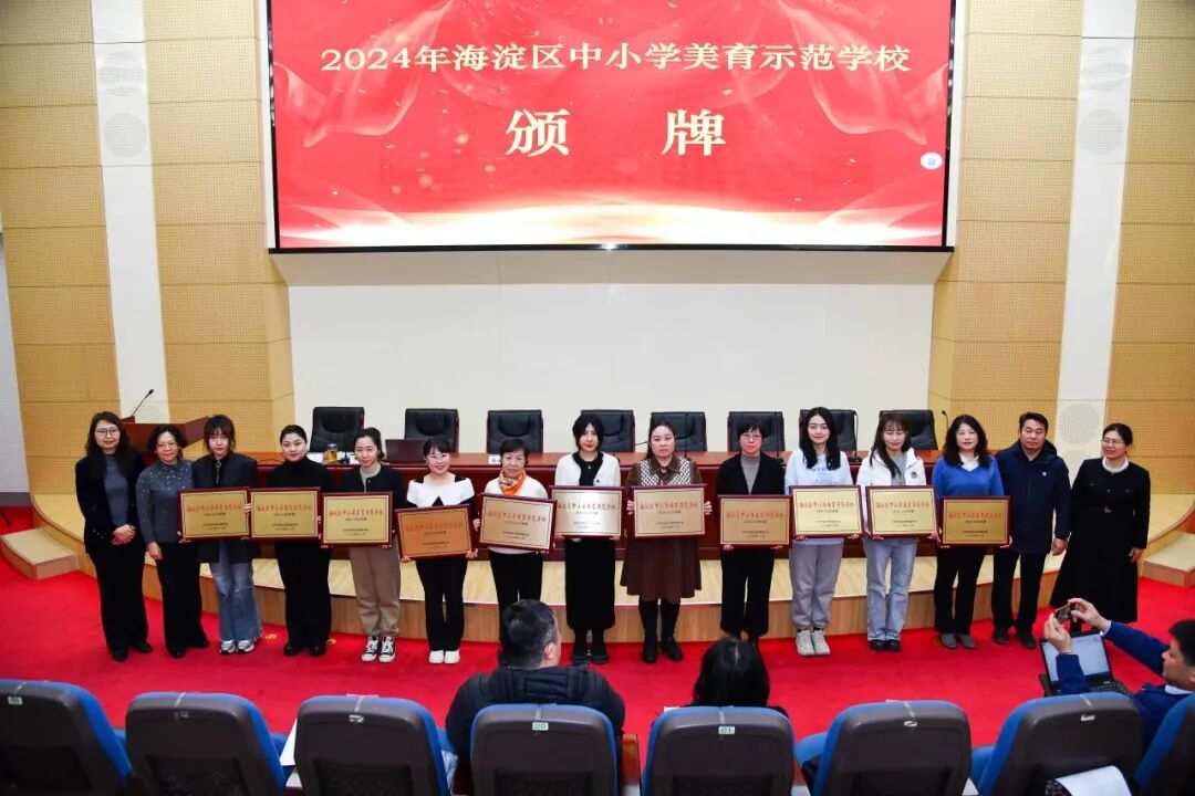 会议对海淀区69所中小学美育示范学校进行表彰。据了解,经过前期学校申报、专家评审合议等严格的评审和认定,今年海淀区共有北京交通大学附属小学、人大附中航天城学校、海淀区中关村第二小学、北京市十一学校等69所中小学,被认定为美育示范学校。
