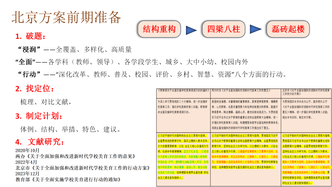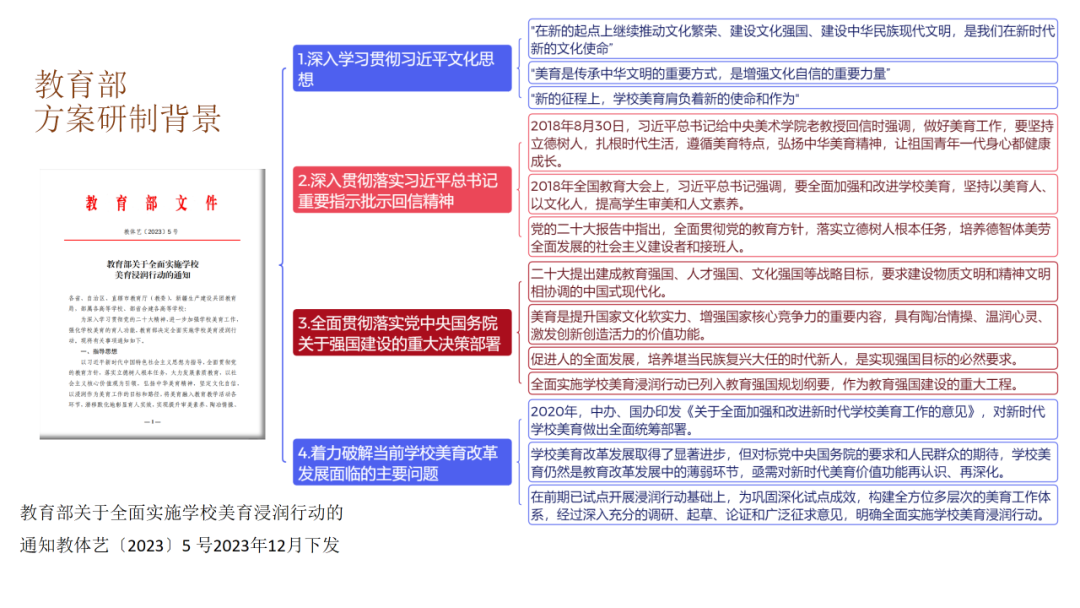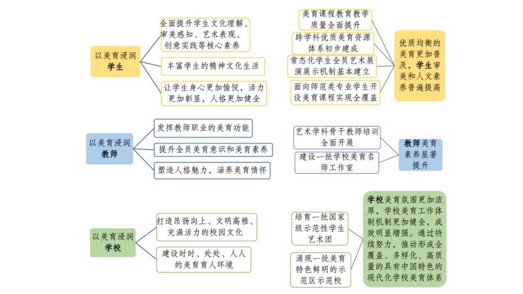 以美育人,从整体宏观角度认识和理解学校美育,完善美育制度与课程内容,合理配置艺术教师与资源,强化美育在课程体系中的地位;