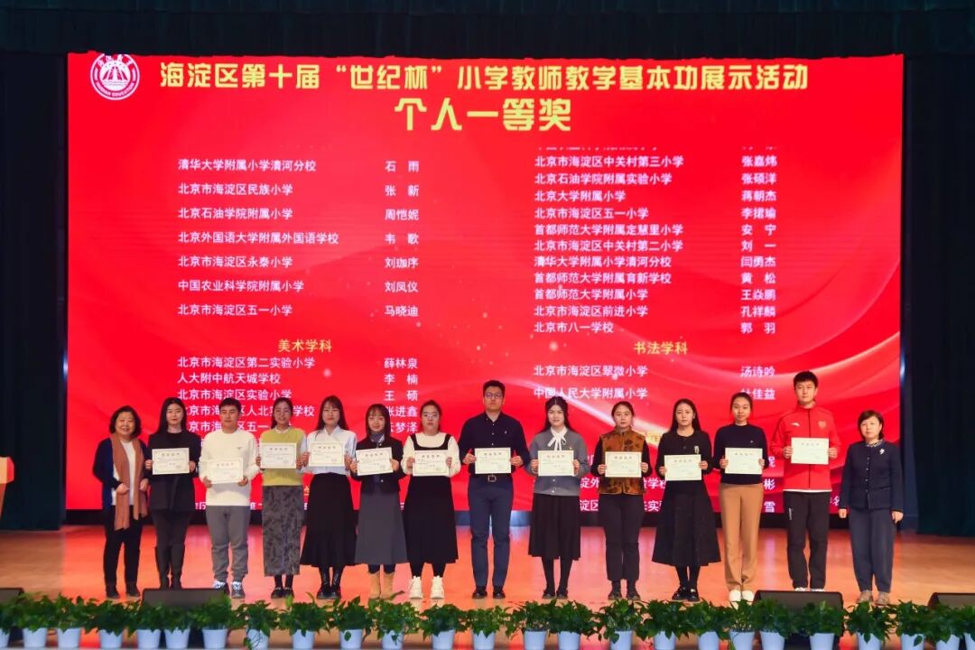 会上,与会领导为在第十届“世纪杯”小学教师基本功展示活动一等奖教师代表,第十届“世纪杯”小学教师基本功展示活动优秀组织奖获奖单位,海淀区小学未来名师颁发证书。