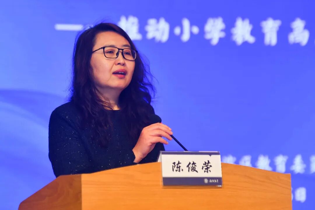 海淀区教科院院长吴颖惠以《学科融合下的课程学习与儿童成长》为主题,分析了学科学习的价值和跨学科课程实施策略,并在此基础上强调知识学习与生命成长,让学生学会求知、学会做事、学会共处、学会做人。
