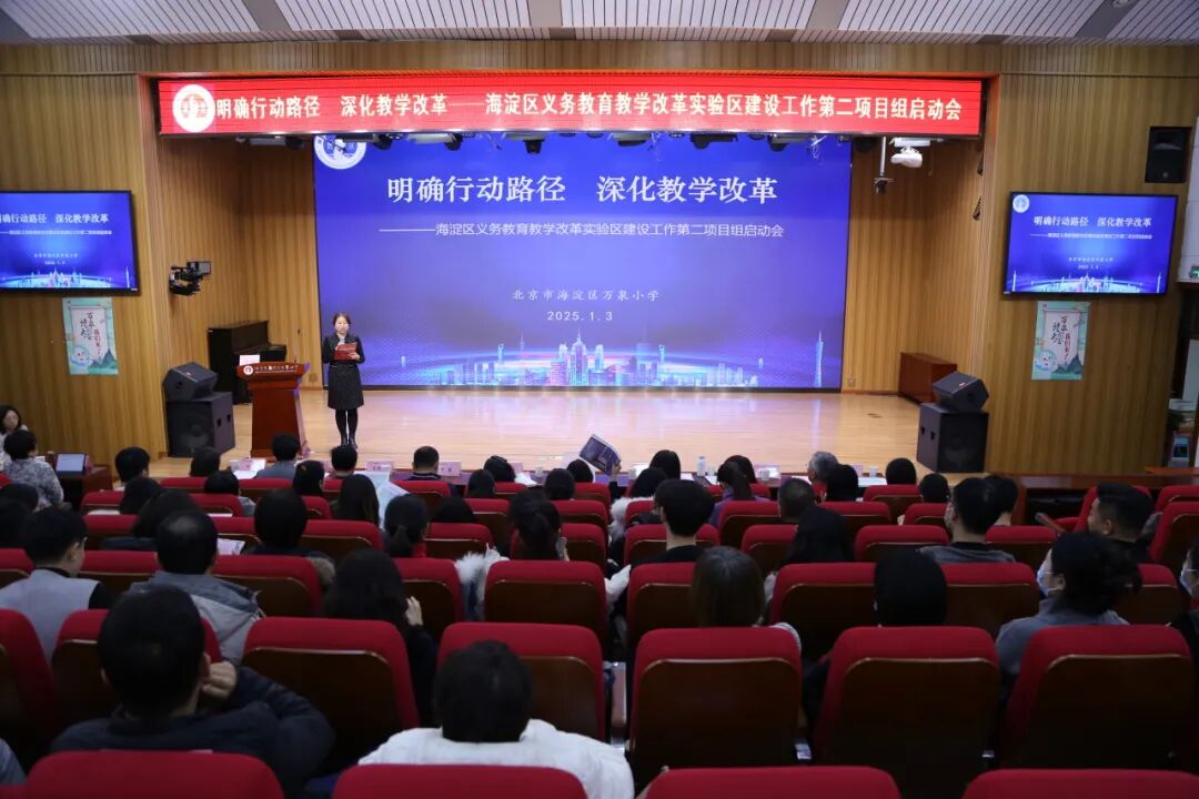 近日,海淀区义务教育教学改革实验区实验基地校、教学改革行动研究第二项目组启动会在北京市海淀区万泉小学召开。本次会议的主题是“明确行动路径,深化教学改革”,旨在清晰界定本项目组义务教育教学改革实验区的建设目标与实施路径,并建立一套行之有效的协作研究与高效管理机制。来自16所成员校的校长、项目负责人及核心组成员齐聚一堂,共同见证这一重要时刻。