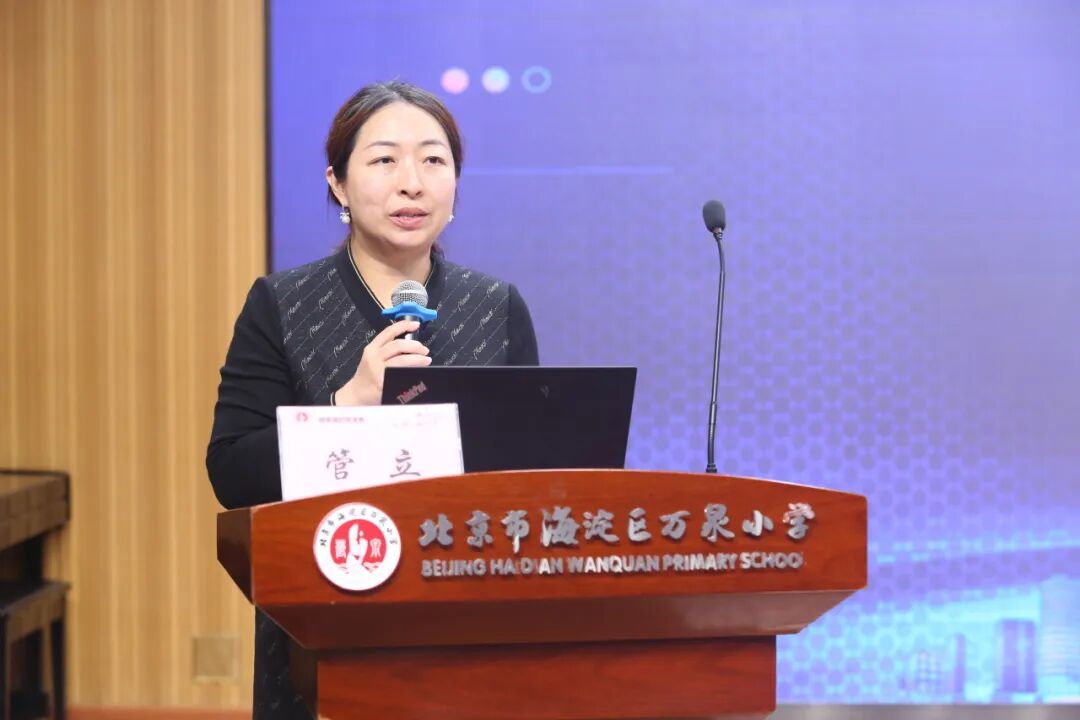 随后,万泉小学科研副校长管立作为教学改革行动研究的项目负责人,对五年计划进行了全面且深入的解读。她从项目目标、参与对象、实施策略、推进计划及预期成果和项目保障机制等六个关键方面进行了详细阐述——