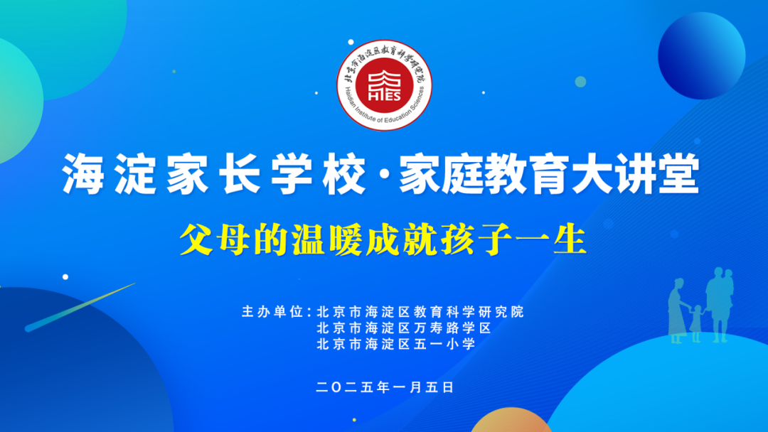 新年伊始,海淀家长学校、学区家长学校、学校家长学校三级联动。为全面落实立德树人的根本任务,健全学校家庭社会协同育人机制,广泛传播科学教育理念和家庭教育方法,海淀教科院、万寿路学区管理中心、五一小学联合举办了“海淀家长学校·家庭教育大讲堂” 第八十七讲《父母的温暖成就孩子一生》。