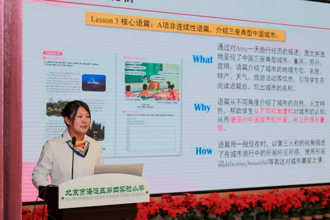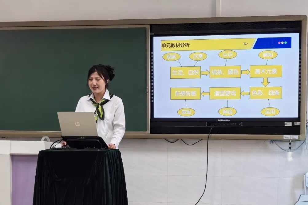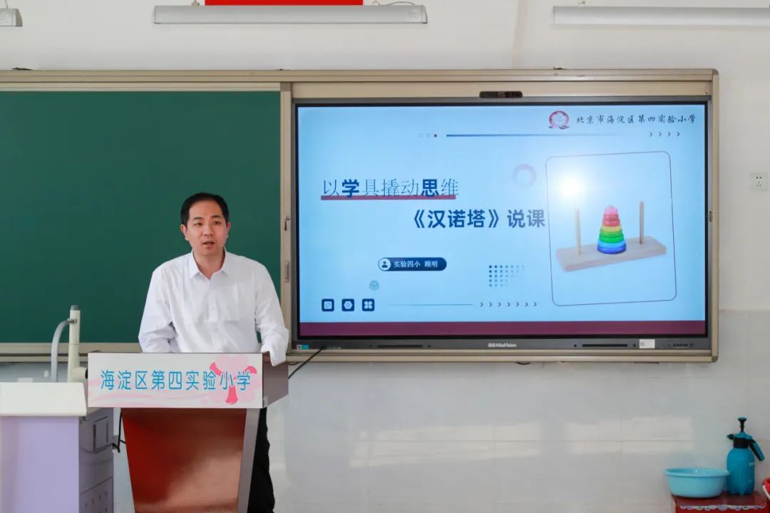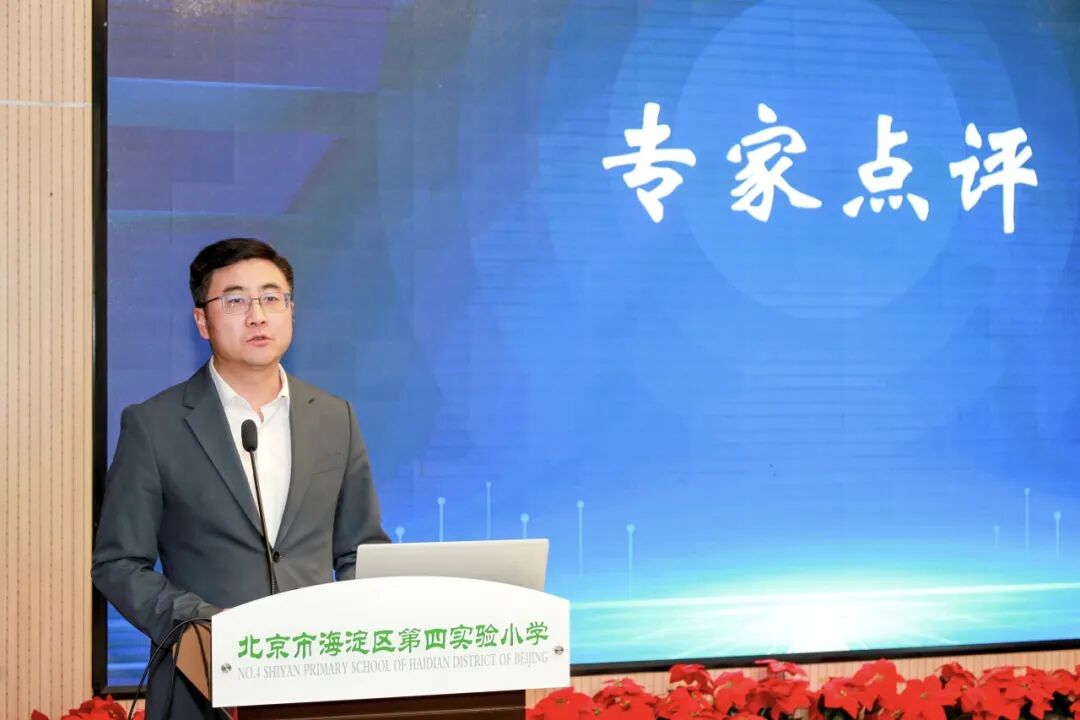 美术学科孔湘、劳动学科王思婷、英语学科刘垚展示后,海淀进校小学教研室副主任杨建进行点评。他充分肯定了三位教师在学科融合和学生实践能力培养方面的努力和成果,并鼓励大家在今后的教学中继续探索创新。