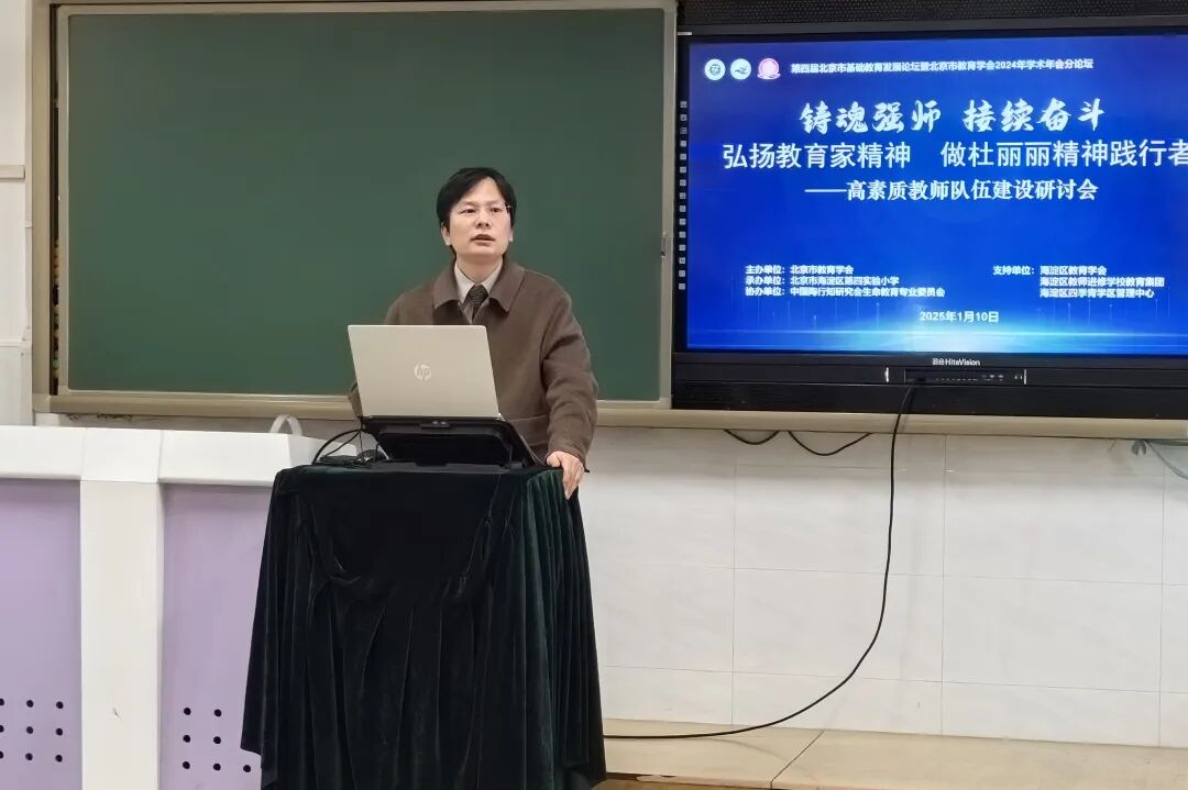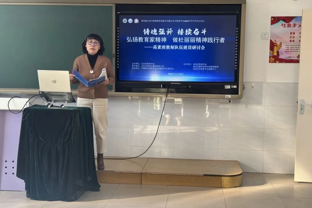 为深入贯彻党的二十大和二十届三中全会精神,切实落实习近平总书记在全国教育大会上提出的 “紧紧围绕立德树人根本任务,朝着建成教育强国战略目标扎实迈进” 的重要指示,1月10日,海淀区第四实验小学以“弘扬教育家精神,做杜丽丽精神践行者”为主题,召开高素质教师队伍建设研讨会。