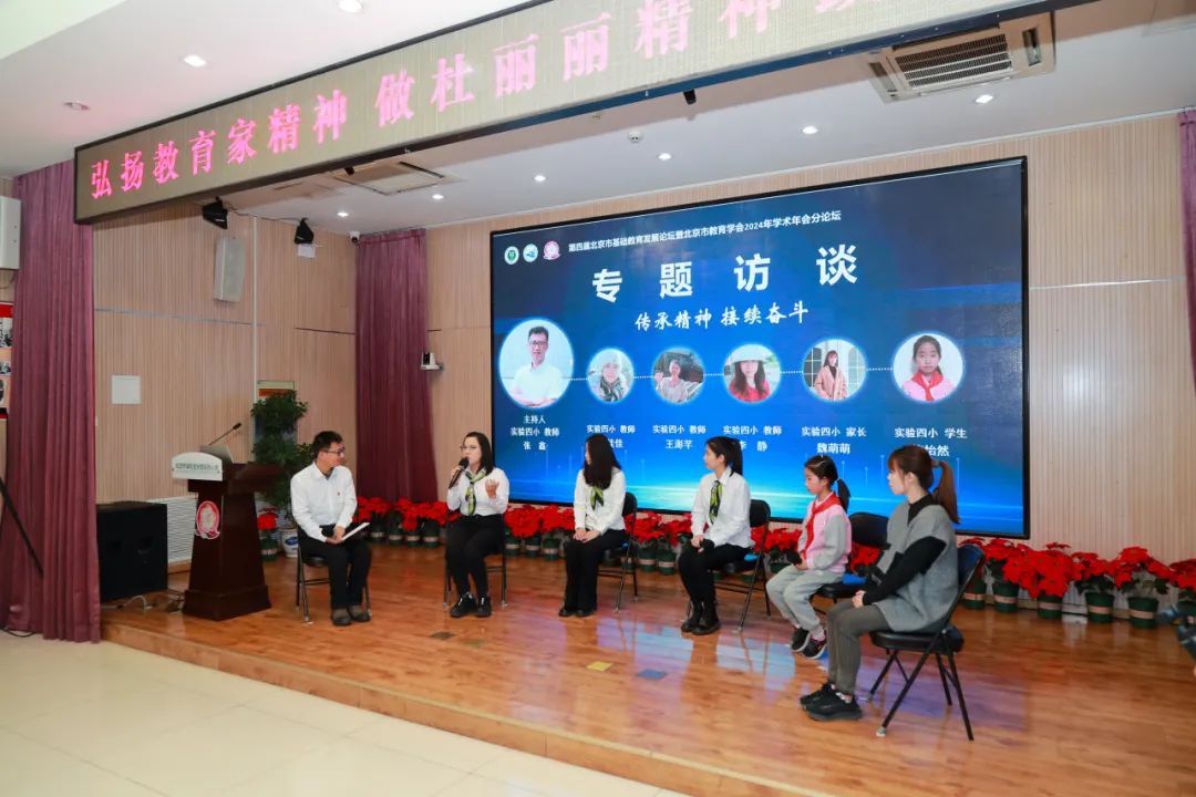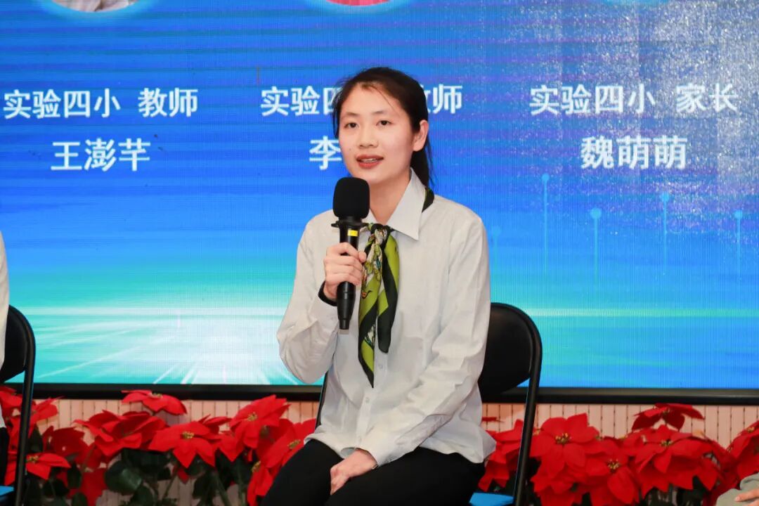 专题访谈环节由实验四小老师张鑫主持。教师代表魏佳佳、李静、王澎芊和家长代表魏萌萌,学生代表施怡然共同围绕《传承精神 接续奋斗》这一主题展开了热烈而深入的讨论。他们从不同的角度分享了自己对杜丽丽精神的理解和传承,以及在教育教学和日常生活中如何践行这种精神,展现了学校、家庭和学生共同努力传承和弘扬杜丽丽精神的良好氛围。