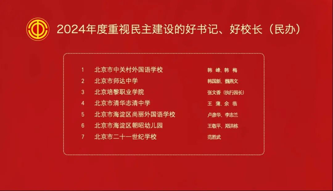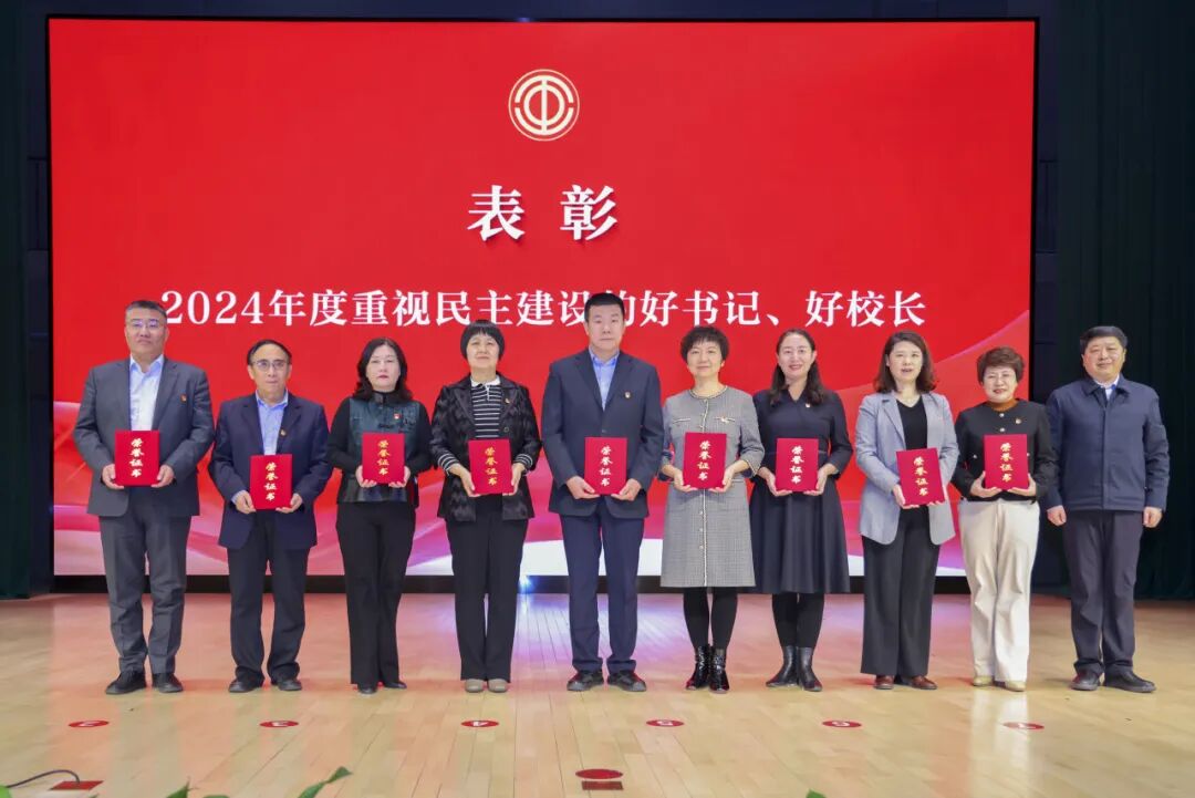 区委教工委书记、区教委主任杜荣贞为“2024年度重视民主建设的好书记、好校长”颁奖。