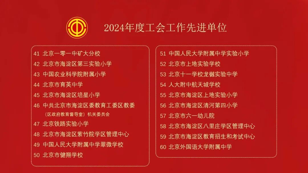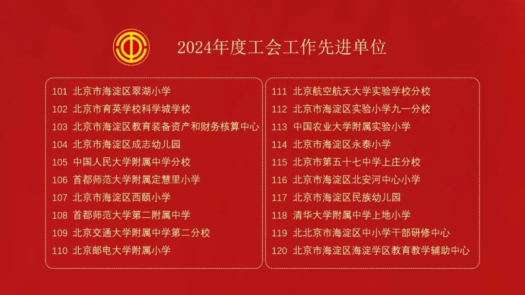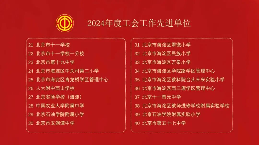 过去的2024年,海淀教育工会在各项工作中涌现了大批先进集体和个人。他们以高度的责任感和敬业精神,为工会事业发展贡献了自己的力量。在大会的“表彰先进”环节中,海淀区教育工会副主席赵巍宣读了2024年工会工作先进单位及“四个一批”先进集体和个人表彰决定。