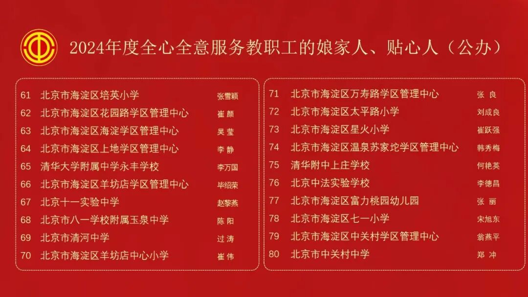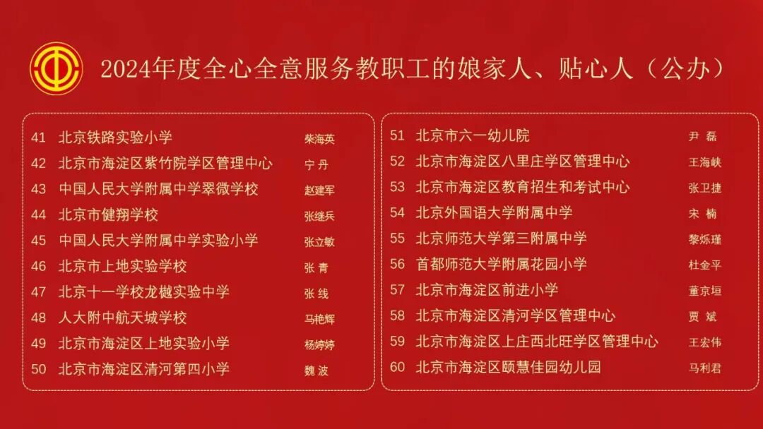 从师德师风建设的引领,到助力教育教学不断提升,从学校“大家”的建设,到教职工“小家”的深情关怀,海淀教育工会彰显着海淀教育的魅力。刚走上工会主席岗位的我要以更细腻、更贴心的服务为老师们排忧解难,助力他们全身心投入教学。