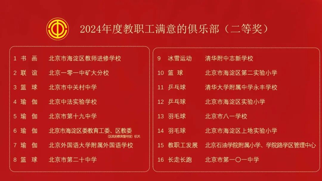 延庆区教育工会副主席、女工委主任李雪艳,海淀区教育工会副主席、中关村三小书记、兼职副主席石磊为“2024年度教职工满意的俱乐部”颁奖。