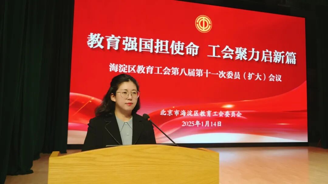 1月14日,海淀区教育工会“教育强国担使命 工会聚力启新篇”第八届第十一次委员(扩大)会议召开。上级工会领导,海淀区委教工委领导,海淀区教育工会第八届委员会常委、委员、经审委员、女工委员,各基层工会主席(工会负责人),部分在职劳模,工会工作先进单位及“四个一批”获奖代表,当年退休离岗工会主席参加了会议。大会由海淀区教育工会常务副主席、经审主任张少莉主持。